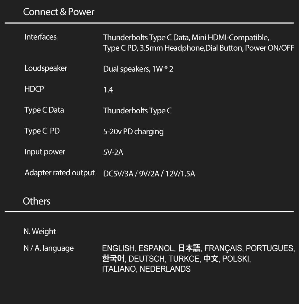 | Минусы: | Входящие в комплект кабели жестковаты. Было бы здорово если комплектная пленка была уже наклеена на дисплей. Если подключить кабелем USB3.0 Type C - Type A в гнездо USB3.0 на ПК то дополнительное питание не требуется. К сожалению такого кабеля в комплекте нет. |