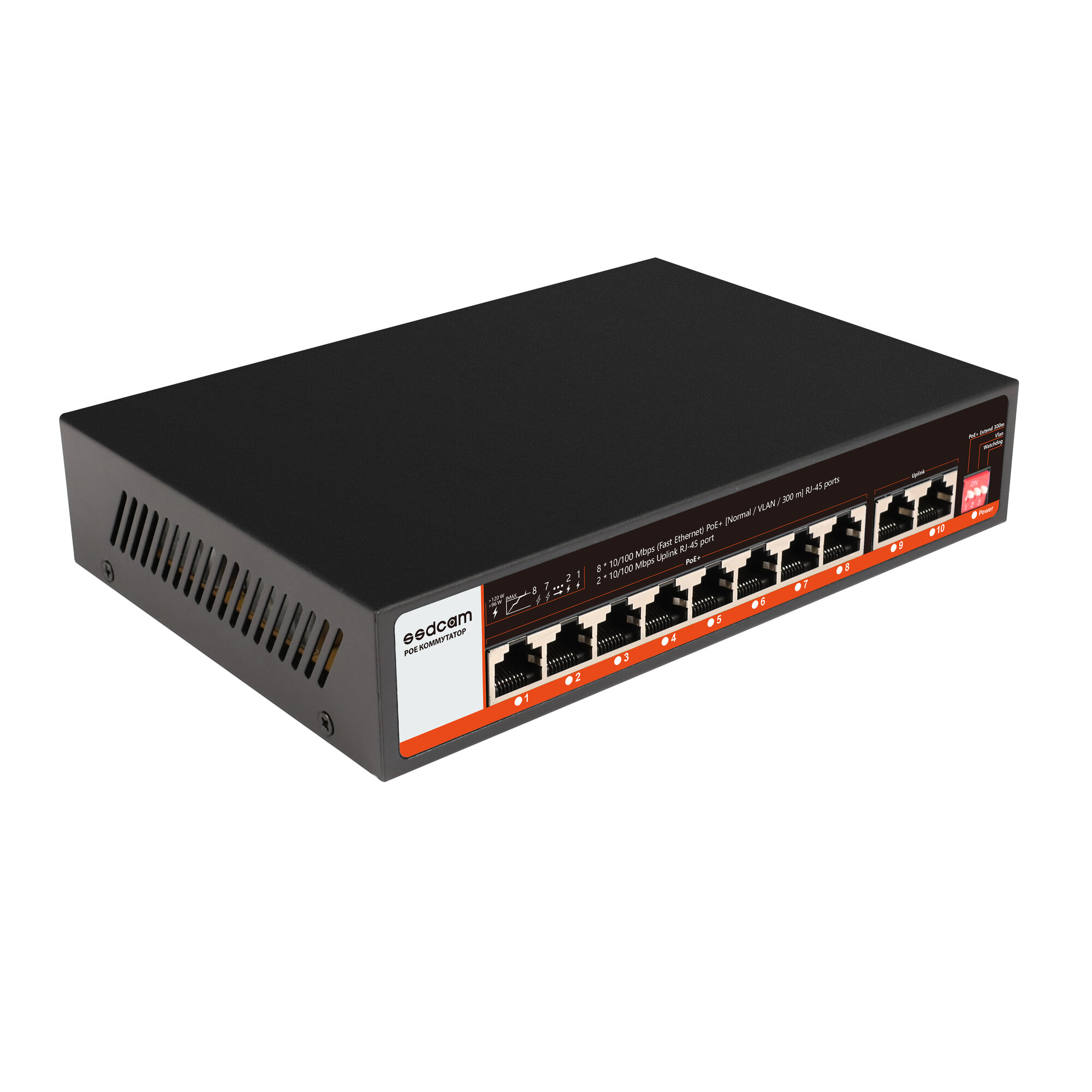 Купить РОЕ коммутатор 10 портовый (8 портов РОЕ + 2 порта UpLink) SSDCAM POE-58P