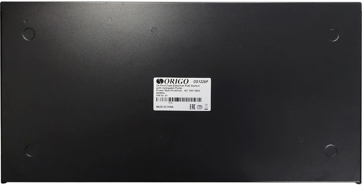 ORIGO Сетевое оборудование OS1226P 285W A1A Неуправляемый PoE-коммутатор 24x100Base-TX PoE+, 2x1000Base-T, PoE-бюджет 285 Вт, корпус металл