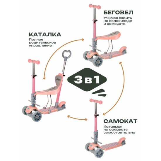 СохранитьСамокат Moby Kids Pony 3 в 1, со светом, розовый интересное: