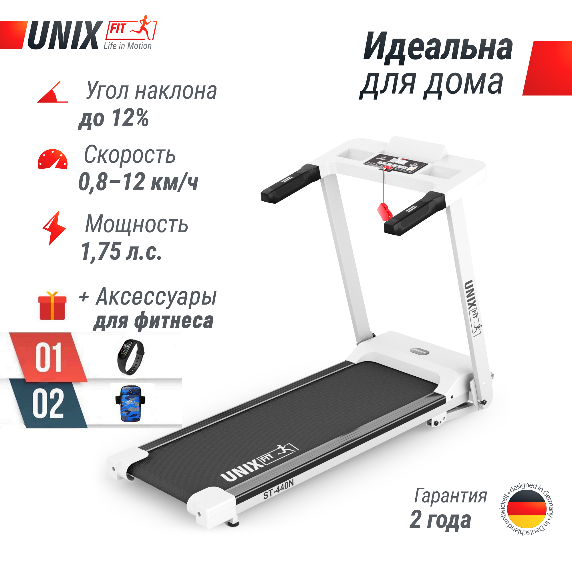 Беговая дорожка UNIXFIT ST-440N White + аксессуары для фитнеса интересное: