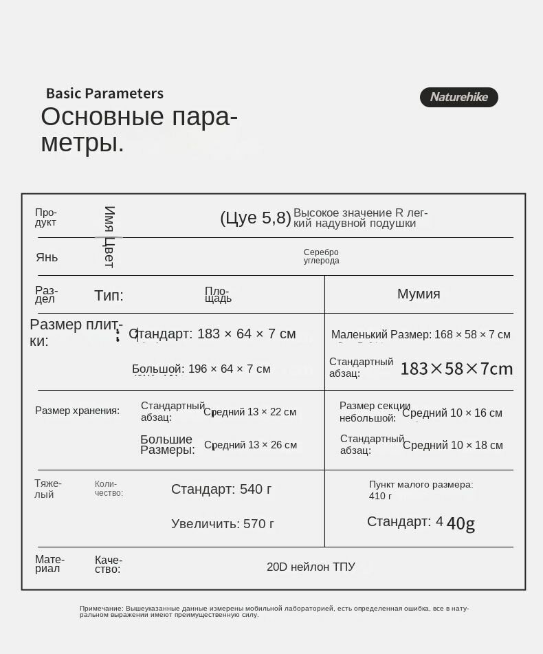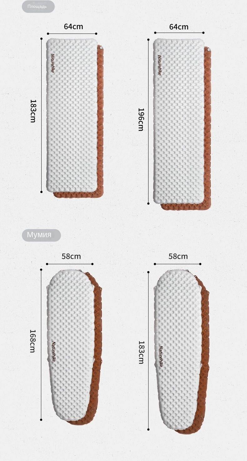 Коврик надувной утолщенный Naturehike CNH22DZ016 R-5.8 20D TPU Mummy Small silvery