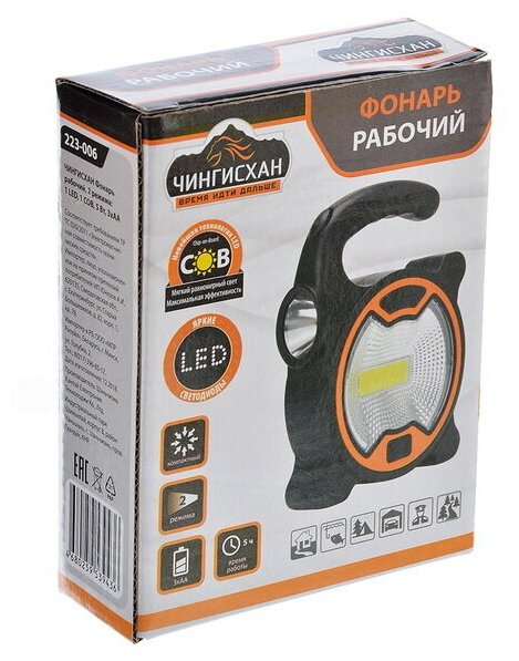Фонарь чингисхан рабочий, 2 режима, 1 Led, 1 COB, 5Вт, 3xAA 223-006