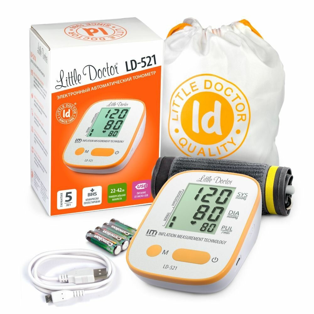 Тонометр автоматический на плечо LD-521 (без адаптера, с USB-кабелем)