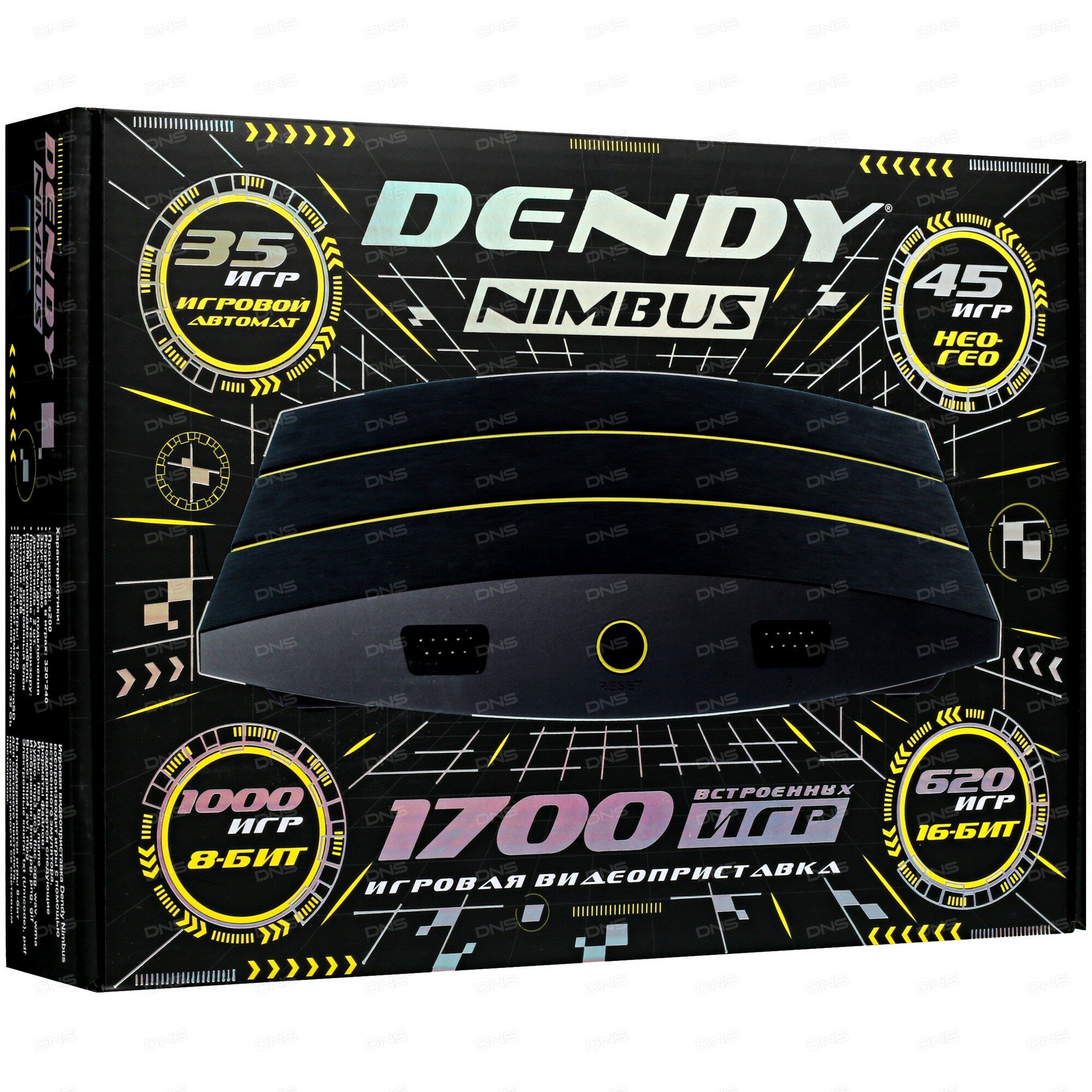 Игровая приставка Dendy Nimbus, 8-bit/16-bit, 1700 игр, 2 геймпада, черный