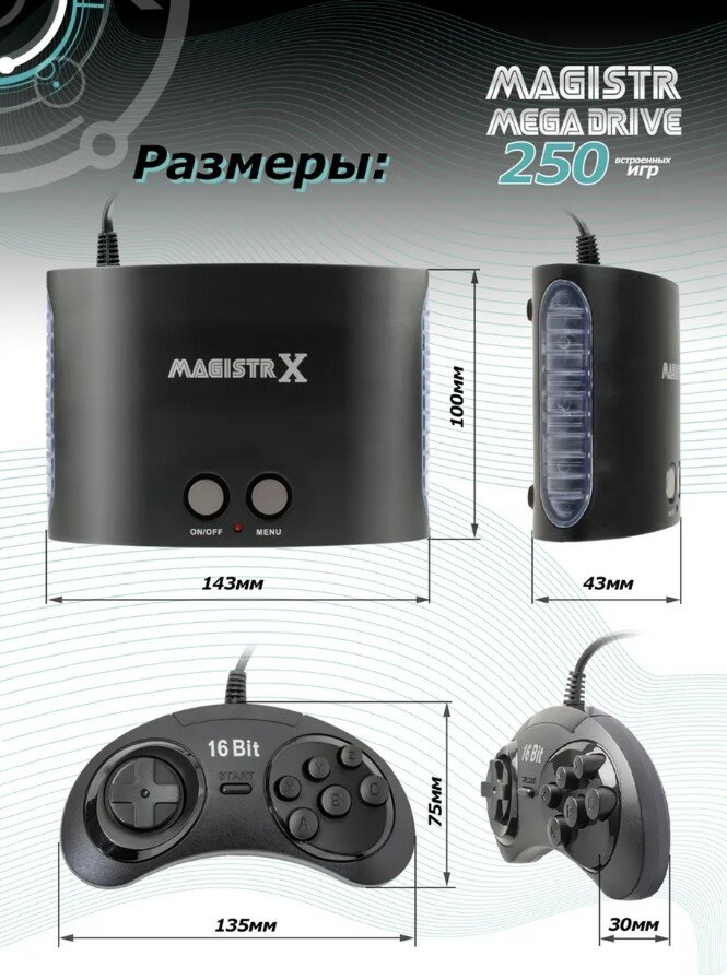 Игровая консоль Magistr Mega Drive 16Bit 250 игр (MX-250) интересное: