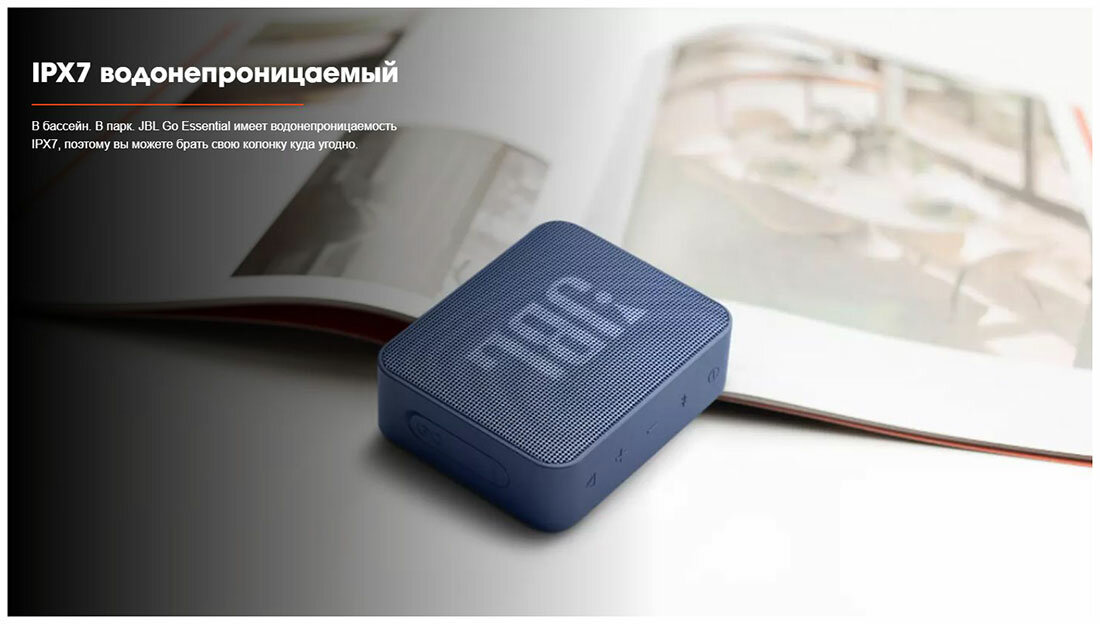 Портативная акустика JBL GO Essential черный (1 x 3.1 Вт, Bluetooth, micro USB, IPX7, JBLGO3ESBLU)