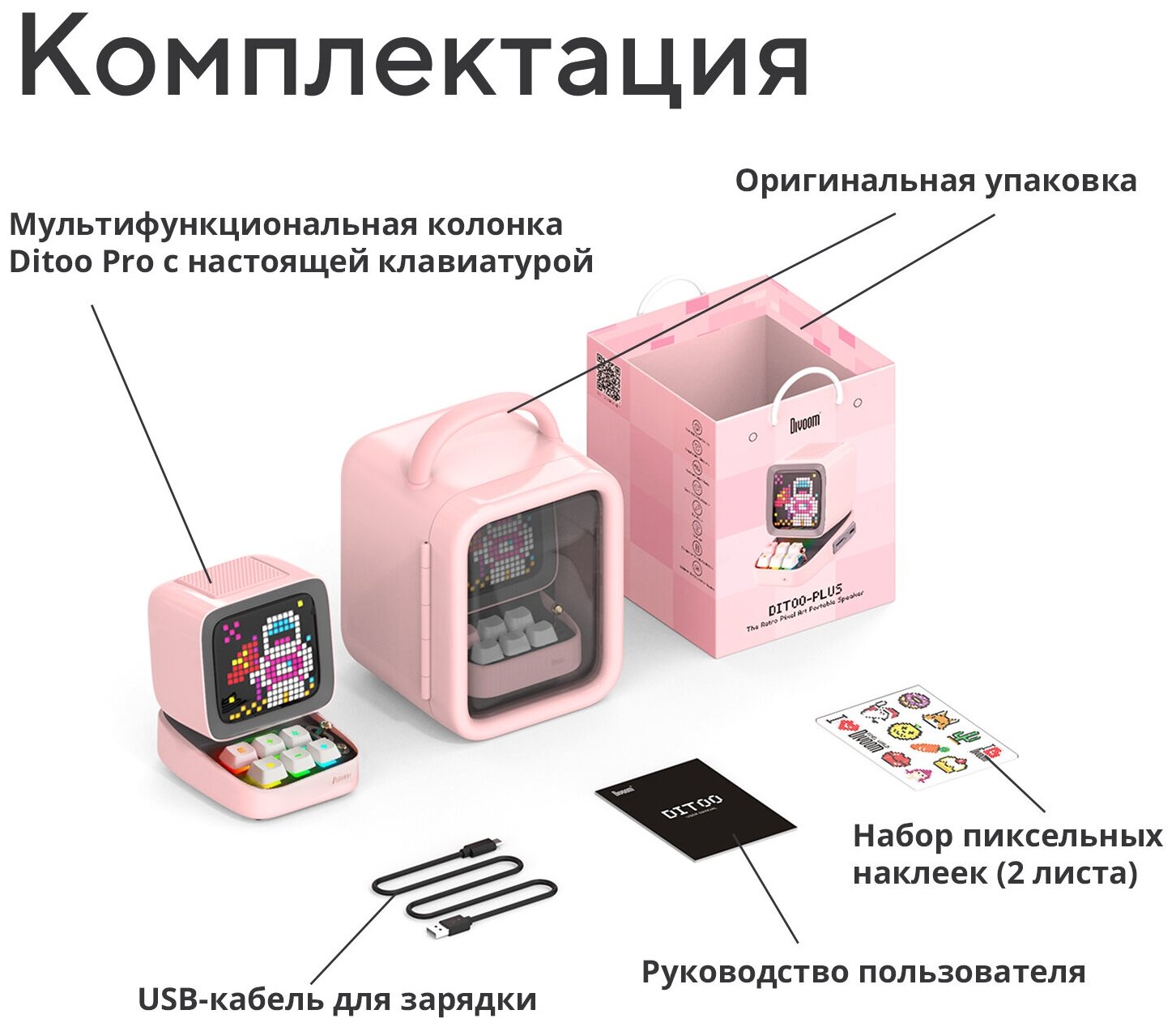 Портативная колонка Divoom Ditoo Pro с пиксельным LED экраном, розовый интересное: