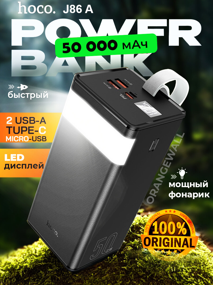 Купить Внешний аккумулятор повербанк 50000 mAh/Быстрая зарядка/Hoco J86A/Черный
