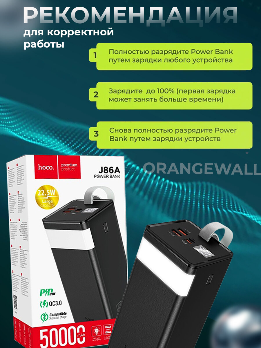 СохранитьВнешний аккумулятор повербанк 50000 mAh/Быстрая зарядка/Hoco J86A/Черный интересное: