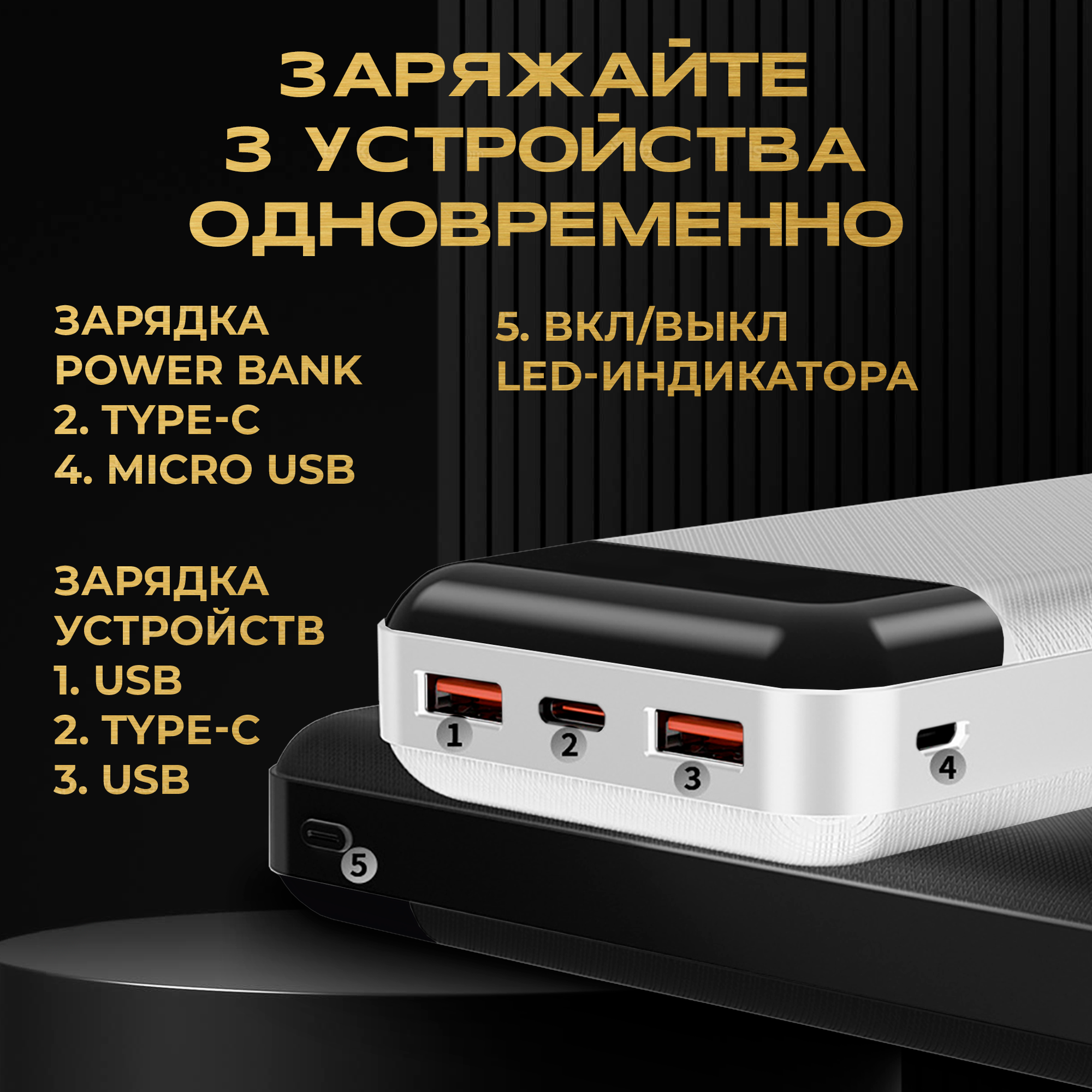 | Плюсы: | Отличная ёмкость, табло с уровнем заряда, и можно заряжать сразу 2 устройства! |