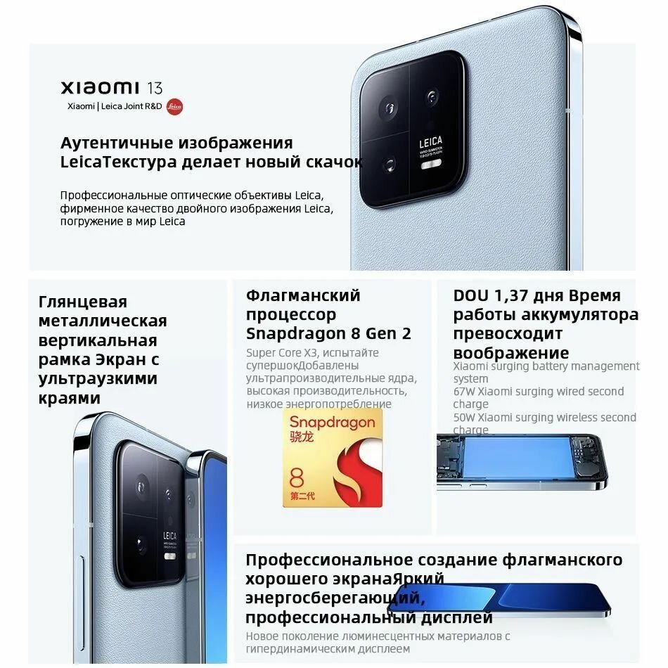 Xiaomi13 8/256g - смартфоны с поддержкой 5G, Google Play и NFC(Синий)