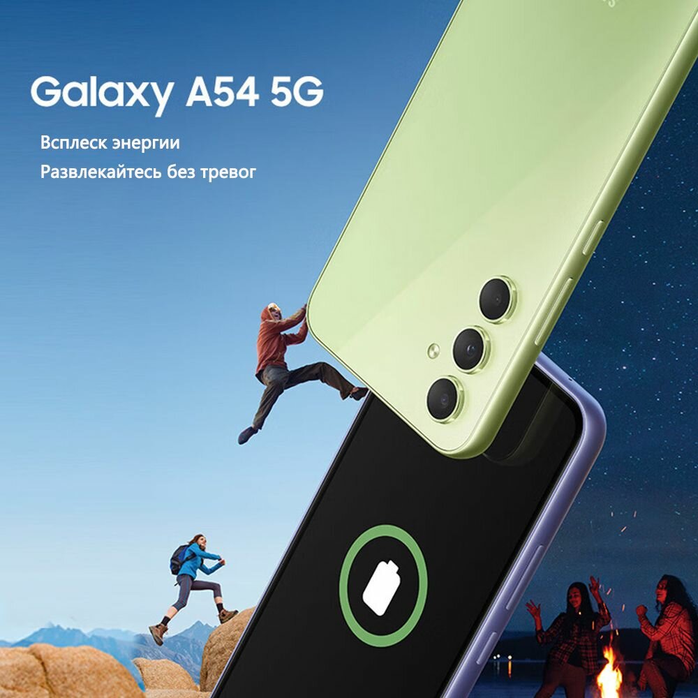 Смартфон Samsung Galaxy A54, 5G, 8/128 ГБ, 2 nano SIM, цвет Лайм (Lime)