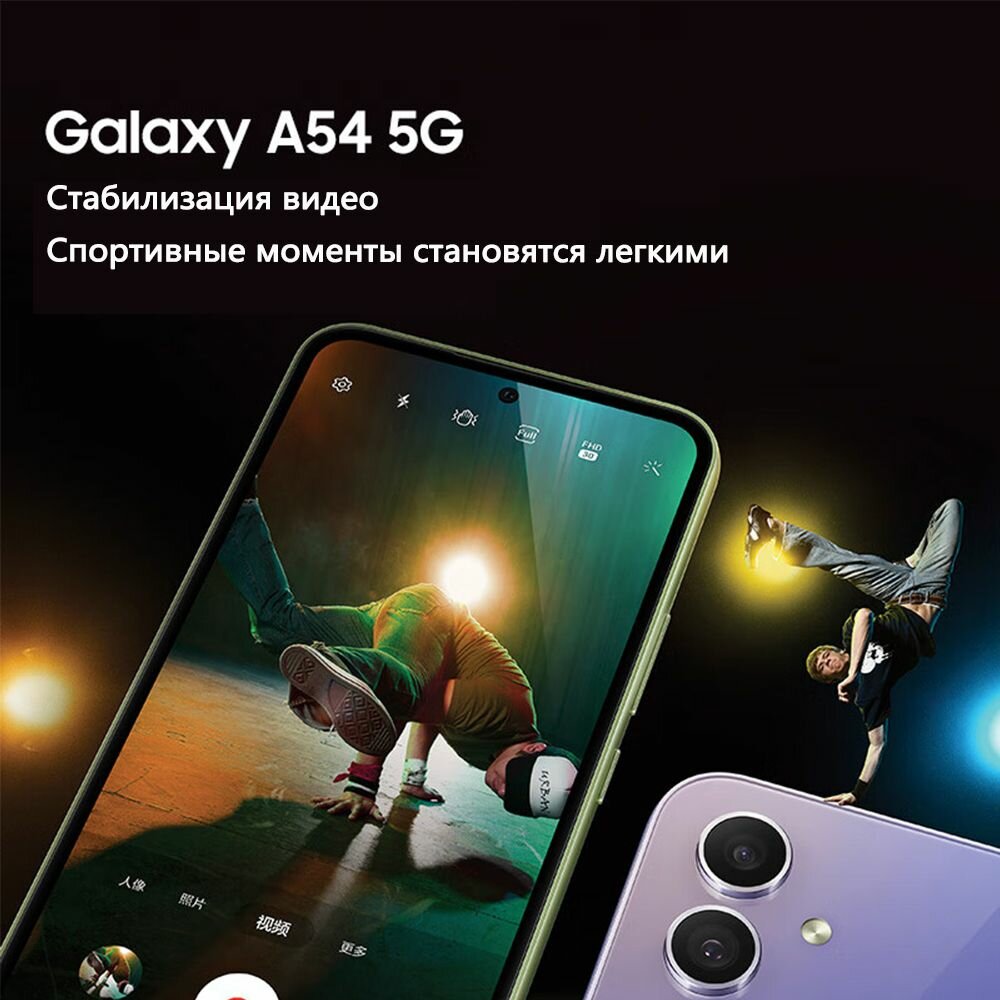 смартфон Samsung-Galaxy-A54-8+128GB-фиолетовый (цвет) Оптическая стабилизация, класс защиты IP67