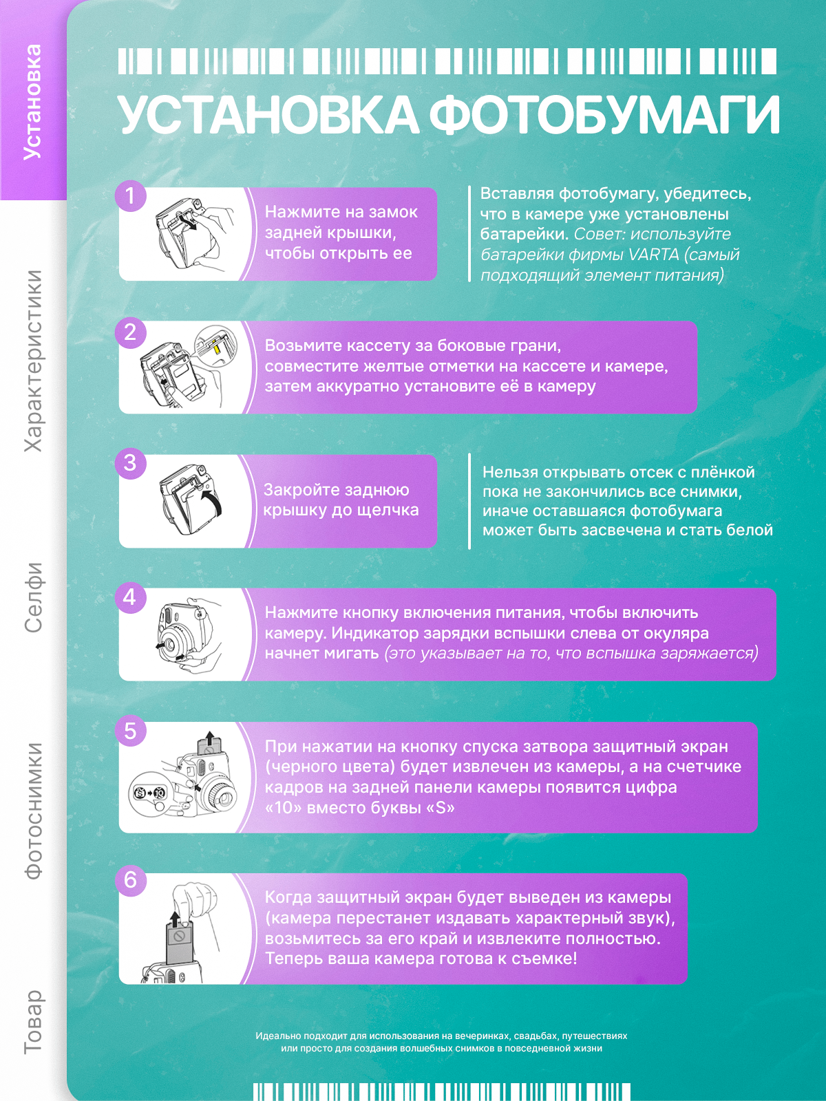 | Плюсы: | крутой фотоаппарат мгновенной печати, работает отлично |