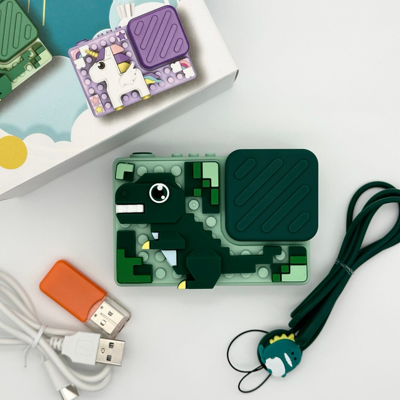 Детский цифровой фотоаппарат Единорог ударопрочный 48Мп камера 1080p Full-HD высокого качества со встроенной памятью, фотоаппарат для детей с играми и селфи, подарок для мальчиков