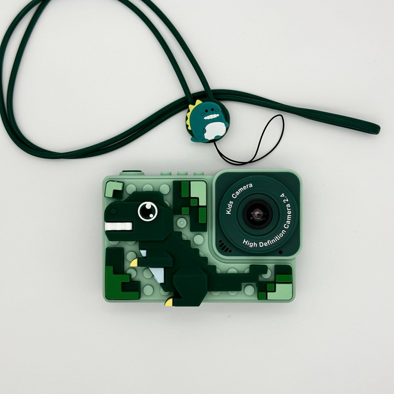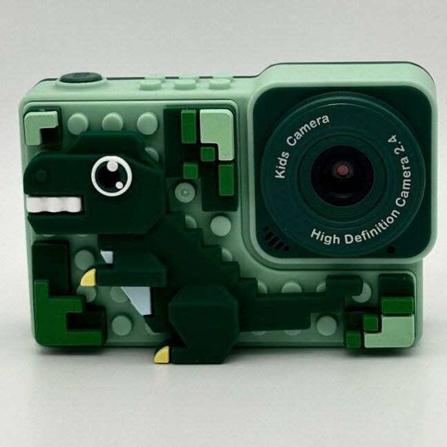Детский цифровой фотоаппарат Динозавр ударопрочный 48Мп камера 1080p Full-HD высокого качества со встроенной памятью, зеленый, фотоаппарат для детей с играми и селфи, подарок для мальчиков