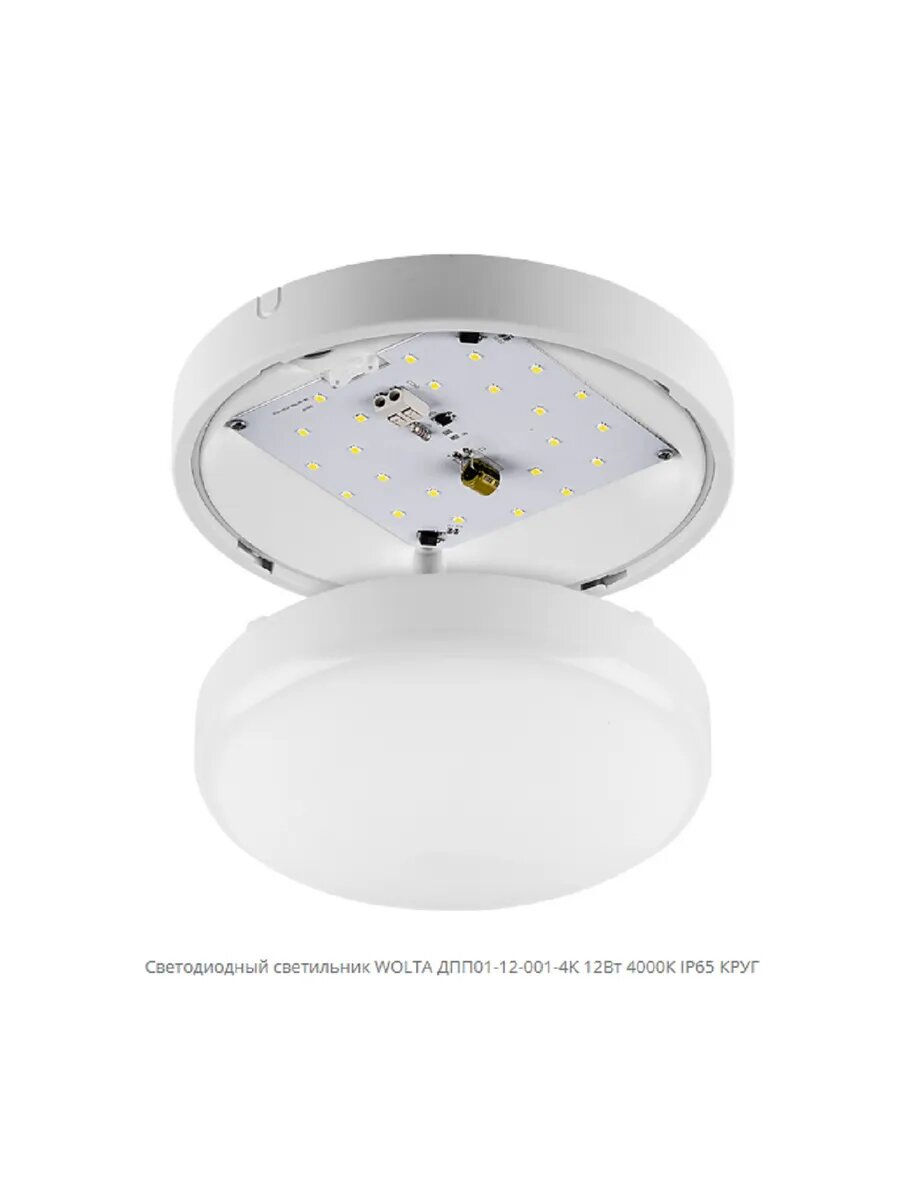 Wolta Светодиодный светильник LED 12Вт , 4000К Дневной свет , IP65 , потолочный , настенный ДПП01-12-001-4К