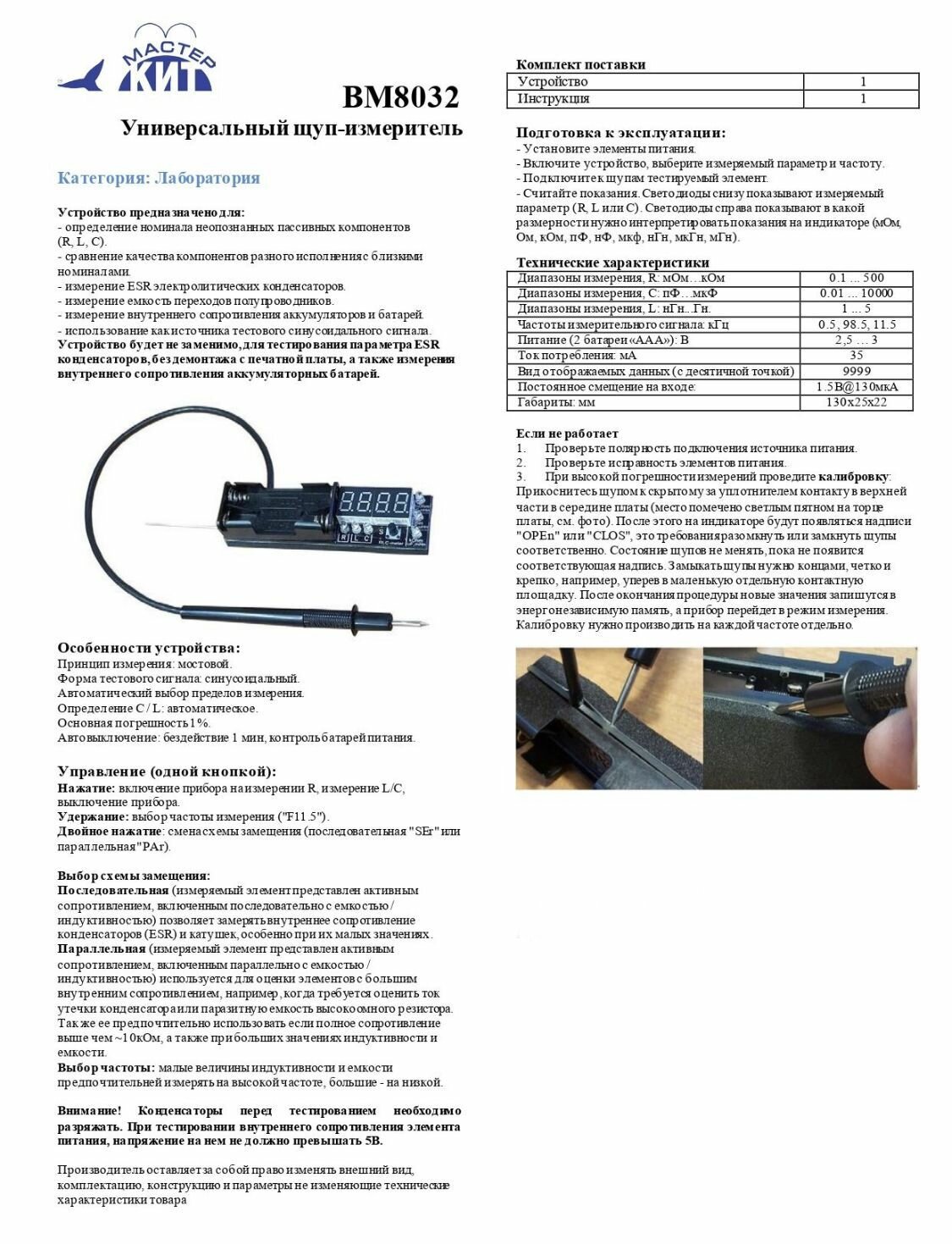 Универсальный щуп-измеритель, RLC метр, ESR конденсаторов, мультиметр, мультитестер, BM8032 Мастер Кит интересное: