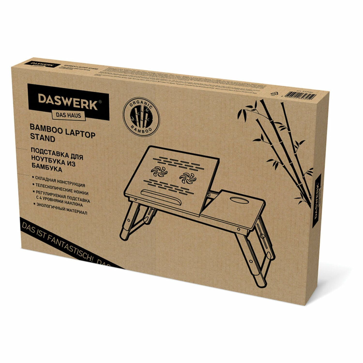 Стол-поднос DASWERK бамбуковый, складной для ноутбука, завтрака, 50х30х25 см, с охлаждением