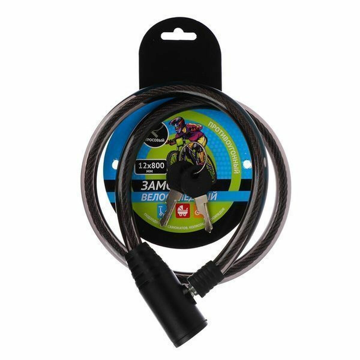 Замок велосипедный противоугонный тросовый, эконом, металл, ПВХ, пластик, 12x800мм интересное: