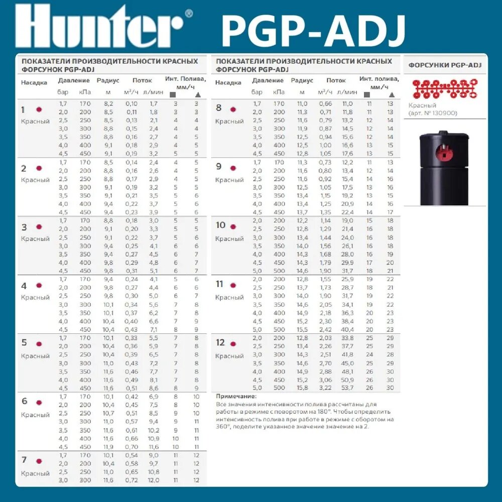 Роторный дождеватель Hunter PGP-ADJ-04 (низкий расход), HU, шт интересное: