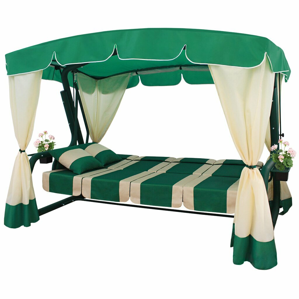 Качели садовые четырёхместные Arno Эдем Люкс с москитной сеткой, до 500 кг, зелено-бежевые