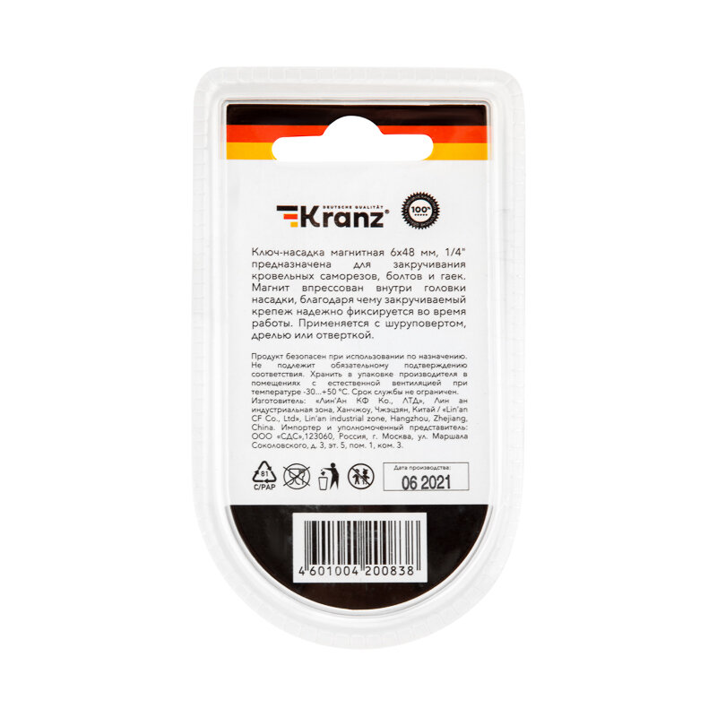 Ключ-насадка магнитная 1/4" 6х48 мм (2 шт./уп.) Kranz 1 упак арт. KR-92-0400-1 интересное: