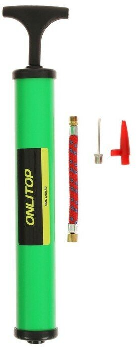 ONLYTOP Насос для мячей ONLYTOP, 28 см, 2 насадки + шнур, цвет микс интересное: