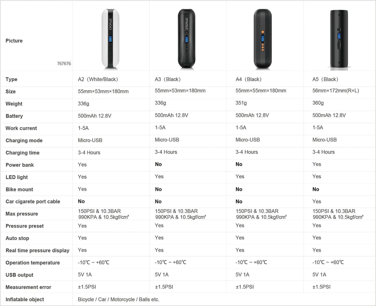 Купить Cycplus Насос Cycplus A2 (5V, 2600mAh, 150psi), цвет Черный