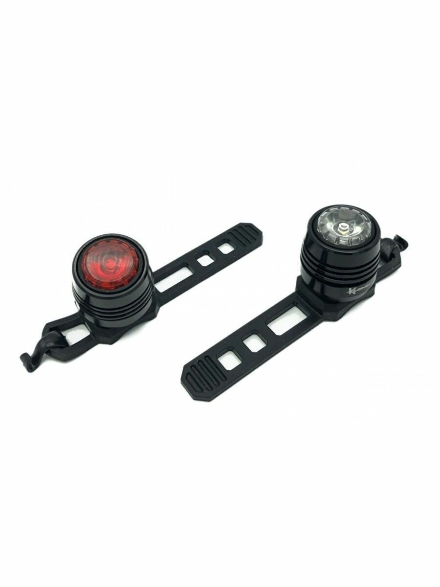 Комплект фонарей передний и задний Klonk 11951, аккумулятор 220 mAh, 3 режима работы, USB кабель в комплекте