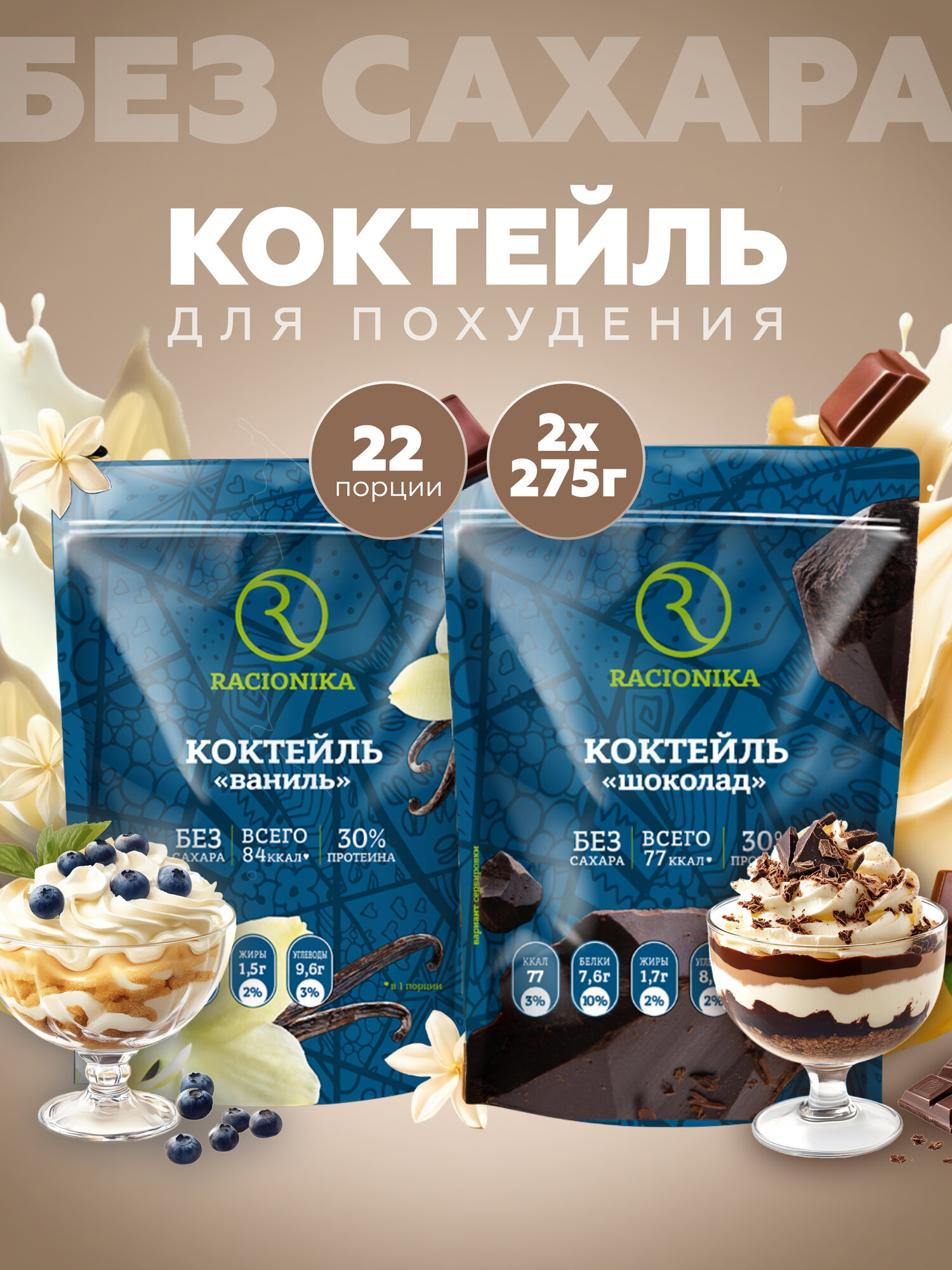 Купить Протеиновый коктейль для похудения без сахара Рационика НАБОР 2 шт, Шоколад и Ваниль, 2 х 275 г