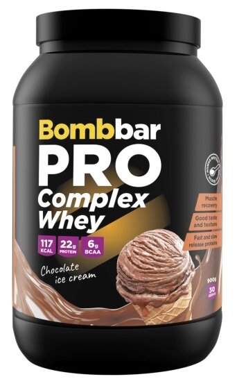 СохранитьПротеин сывороточный BOMBBAR Pro Complex Whey, 900 г, вкус: шоколадный пломбир интересное: