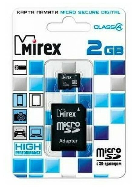 Модификации: Mirex microSD Class 4 2GB + SD adapter.