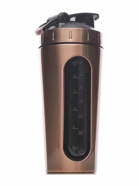СохранитьМеталлический шейкер для протеина с мерной шкалой и клапаном для защиты от протекания FitRule 700 мл (Золотистый) интересное: