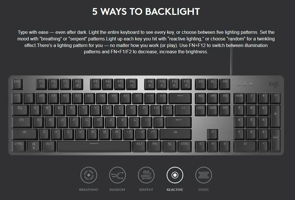 Механическая проводная клавиатура Logitech K845, 104 клавиши, КОРИЧНЕВЫЙ свитч, ТОЛЬКО АНГЛИЙСКИЙ, черная