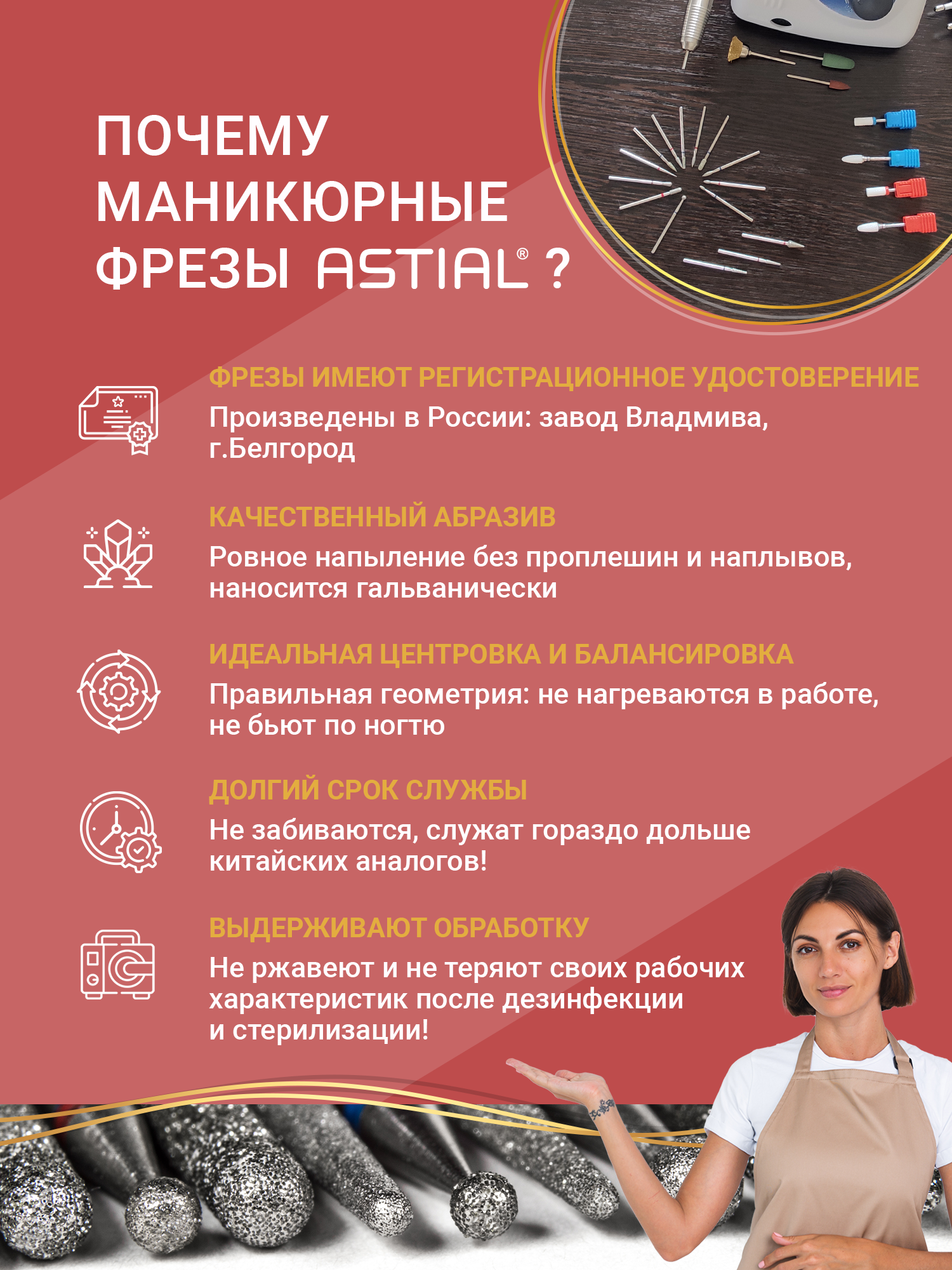 Фреза "Пламя тупое" Astial для маникюра/педикюра алмазная с закруглённым кончиком, набор из 5 штук, 806.104.244.514.021 интересное: