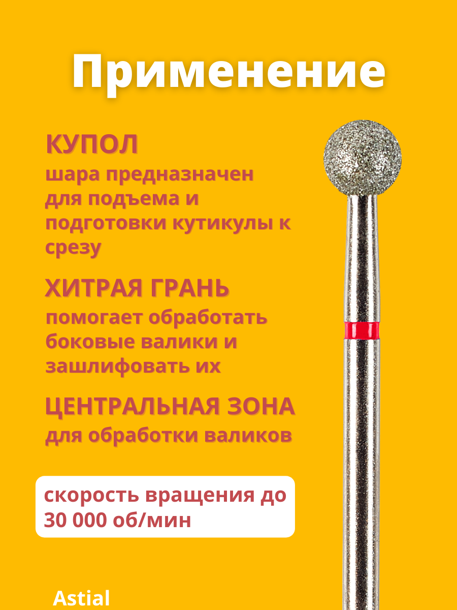 Astial / Фреза для маникюра и педикюра алмазная тонкая красная Шар Сфера Набор для кутикулы 1 шт