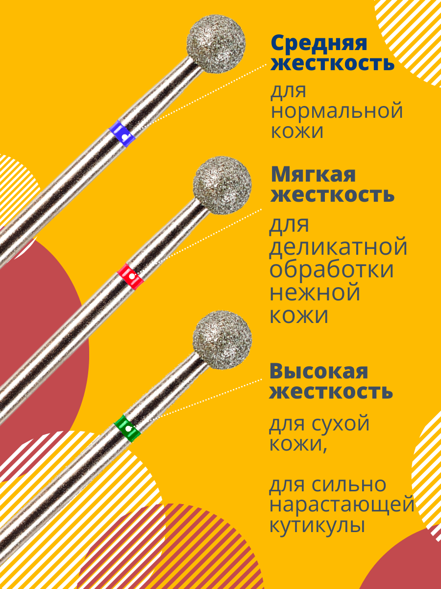 Фреза для ногтей Astial, алмазная, шар, 3 штуки