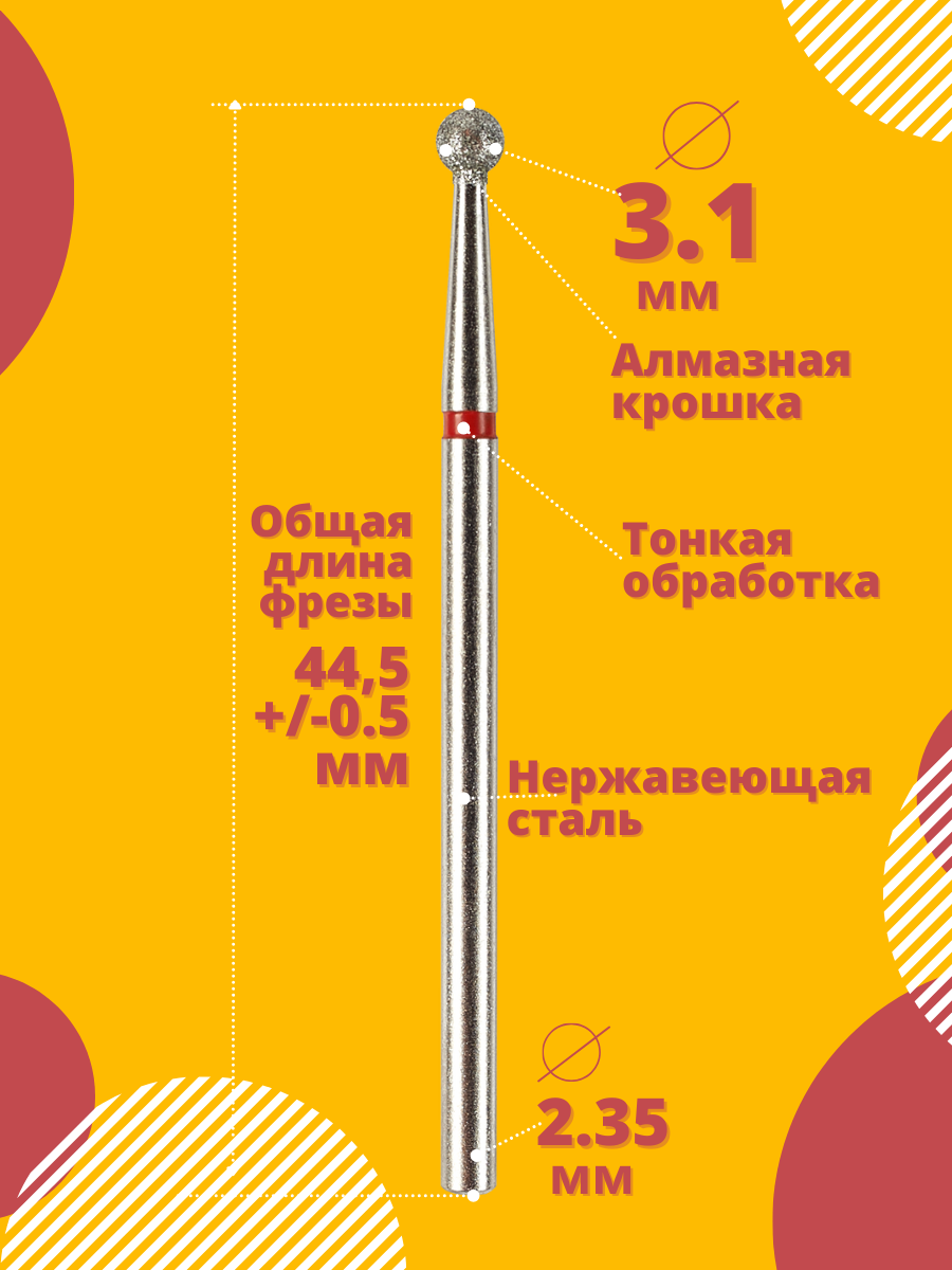 Фреза для маникюра и педикюра Astial "Шар", 3,1 мм, 5 штук, 806.104.001.514.031