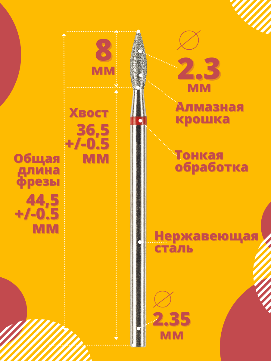 Фреза Astial для маникюра "Пламя" грубая алмазная 5 штук, 2.3 мм, 806.104.243.534.023