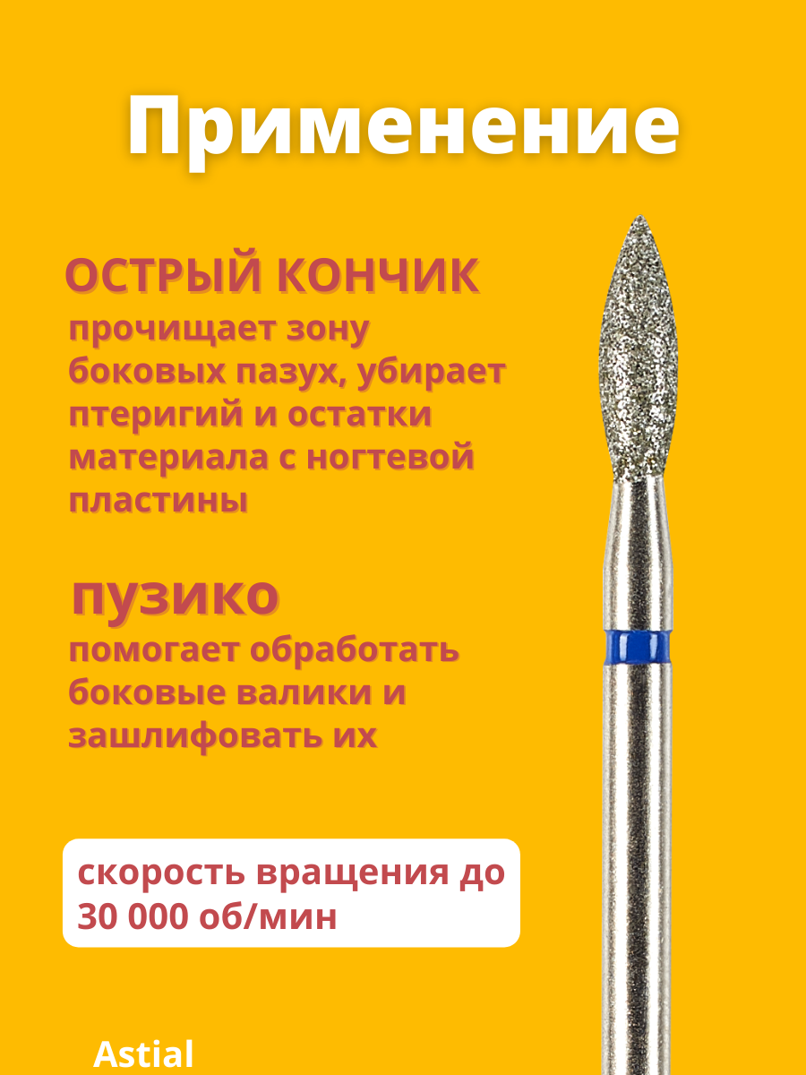 Astial / Фреза для маникюра и педикюра алмазная средняя синяя Пламя с острым кончиком Набор для кутикулы 1 шт