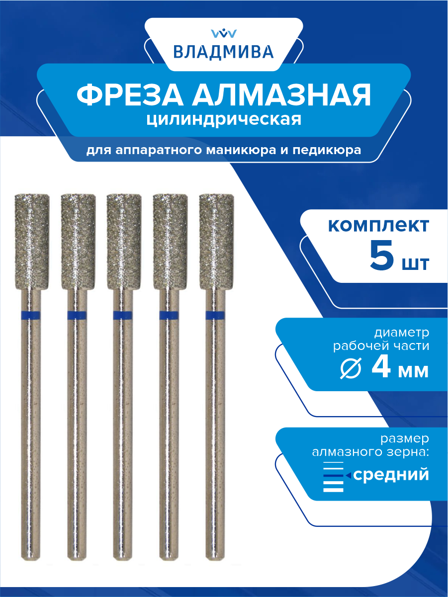 Фреза алмазная цилиндрическая, средней зерн. 4,0 мм. 5 шт.(866.104.107.100.040) интересное: