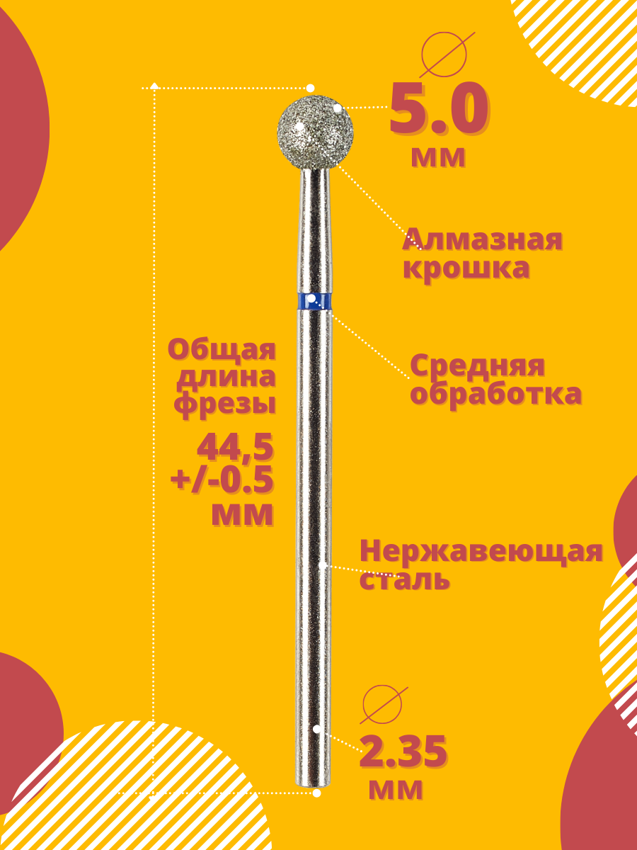 Купить Фреза Шар (сфера) "Astial" для маникюра и педикюра алмазная, средняя, синяя, набор из 5 штук, 806.104.001.524.050