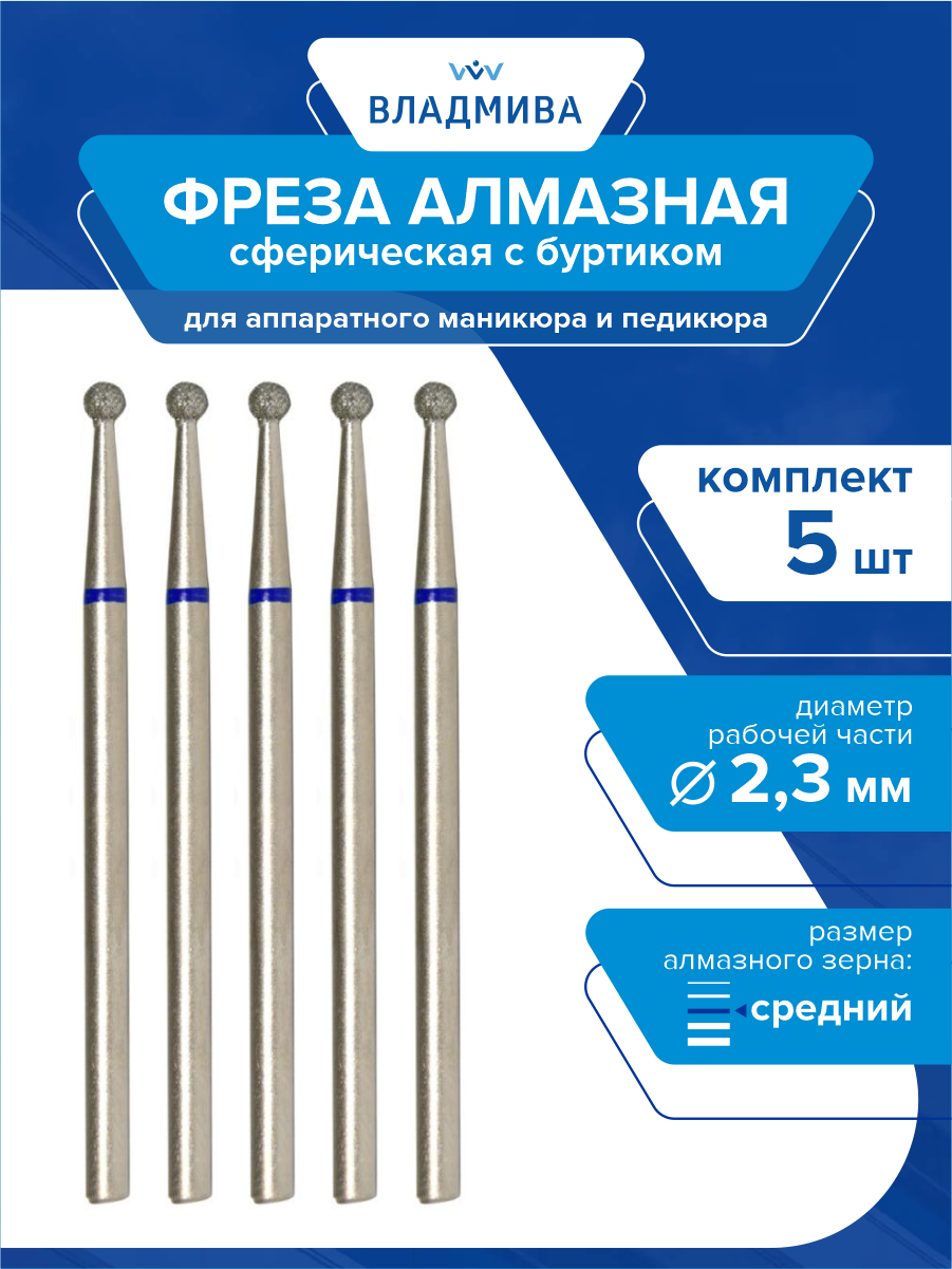 Фреза алмазная сферическая с буртиком, средней зерн. 2,3 мм. 5 шт.(866.104.002.045.023) интересное: