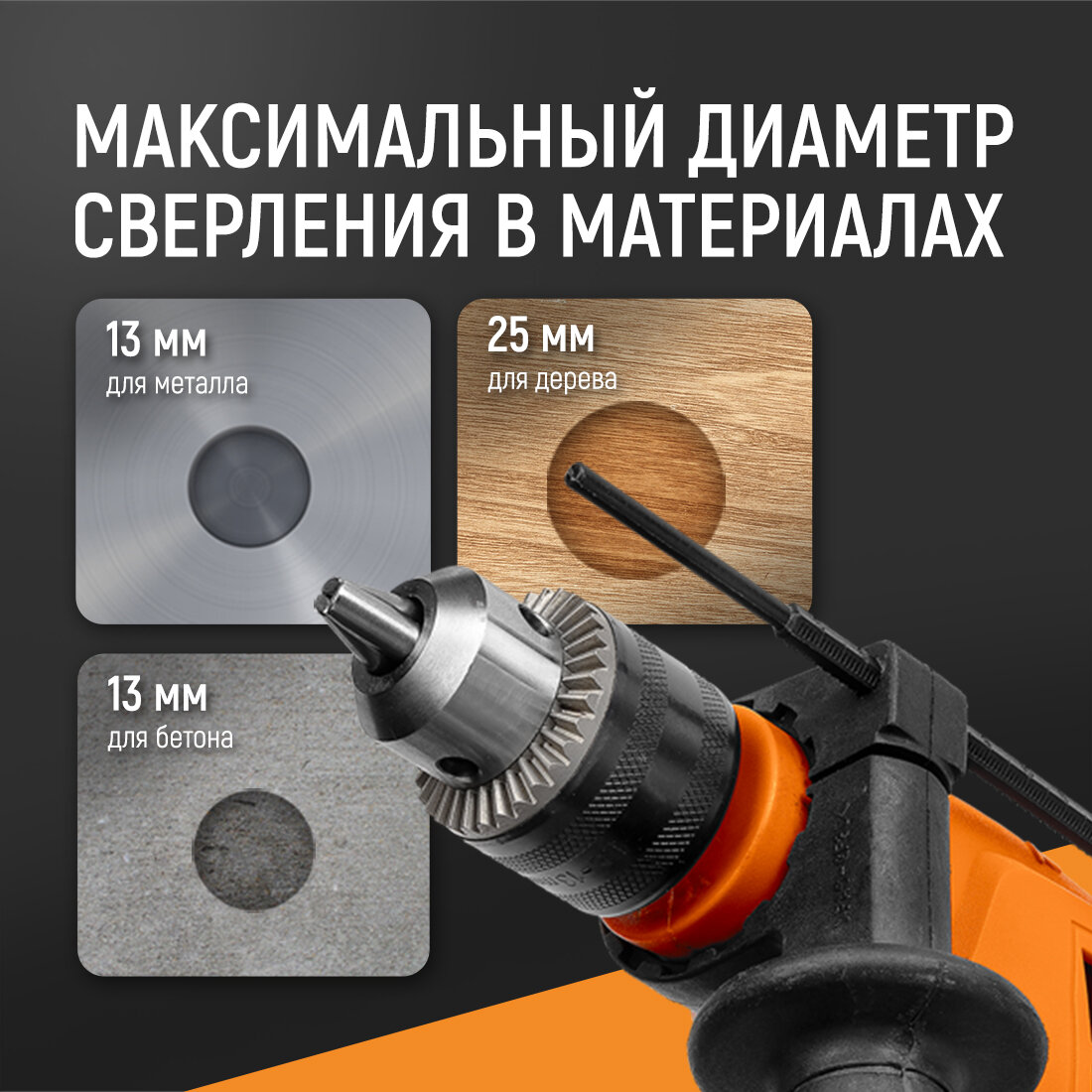 Дрель ударная, TDM Electric, ДУ-850 Рубин, ключевая, 13 мм, 850 Вт, шнур 3м