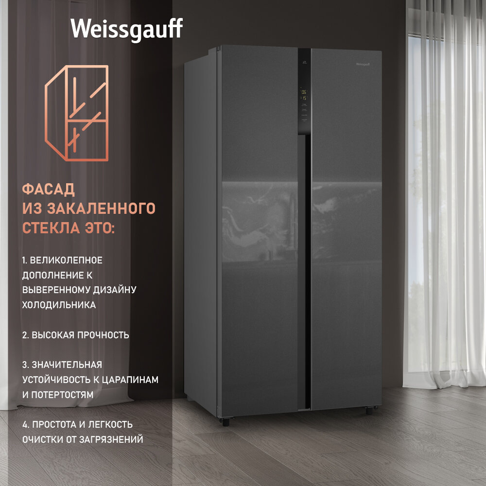 Купить Отдельно стоящий холодильник с инвертором Weissgauff WSBS 500 Inverter NoFrost Bru Steel Glass Side by Side