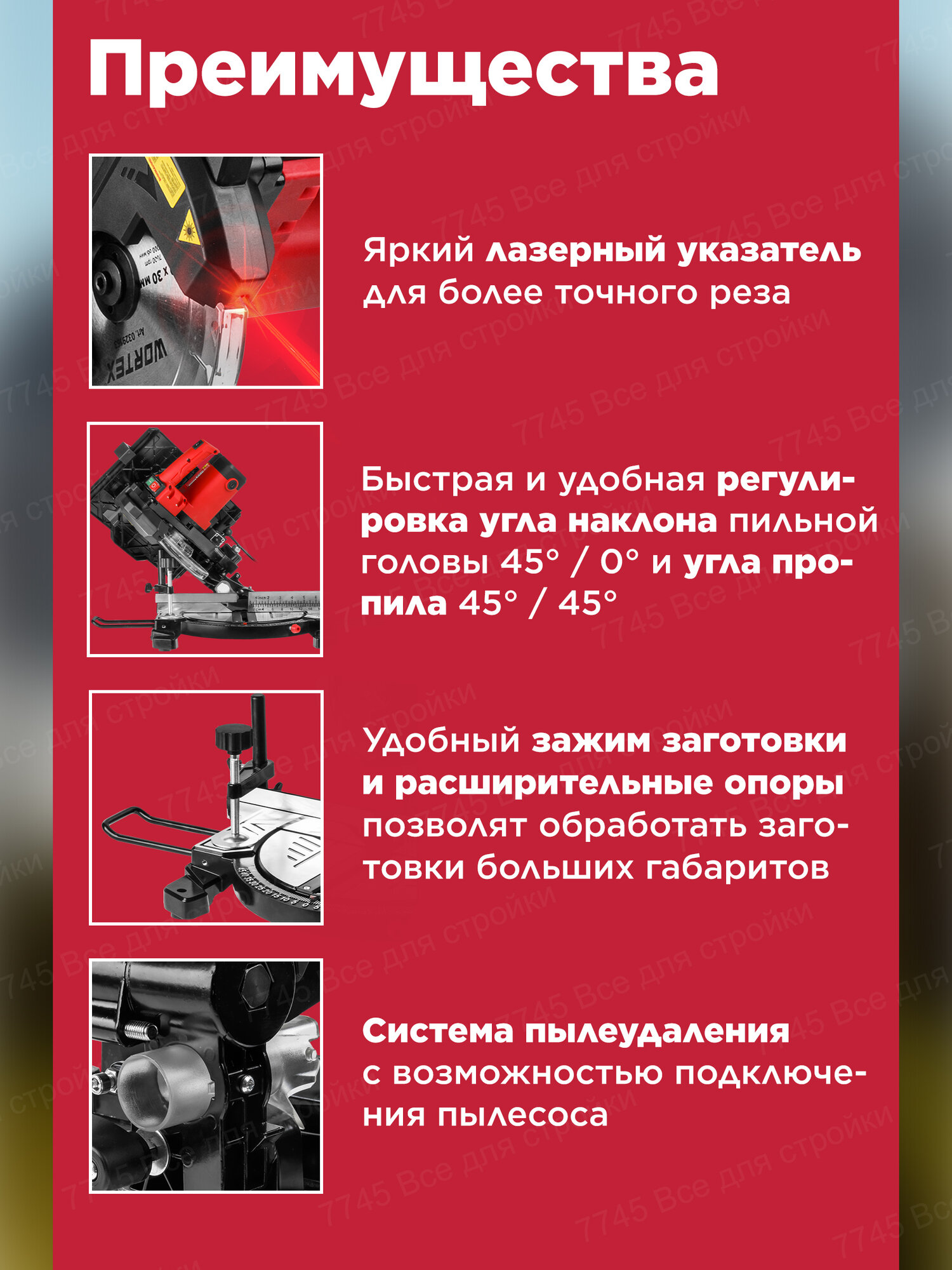 Пила торцовочная WORTEX MS 2116 L 1500 Вт, диск 210х30 мм с лазером и пылесборником
