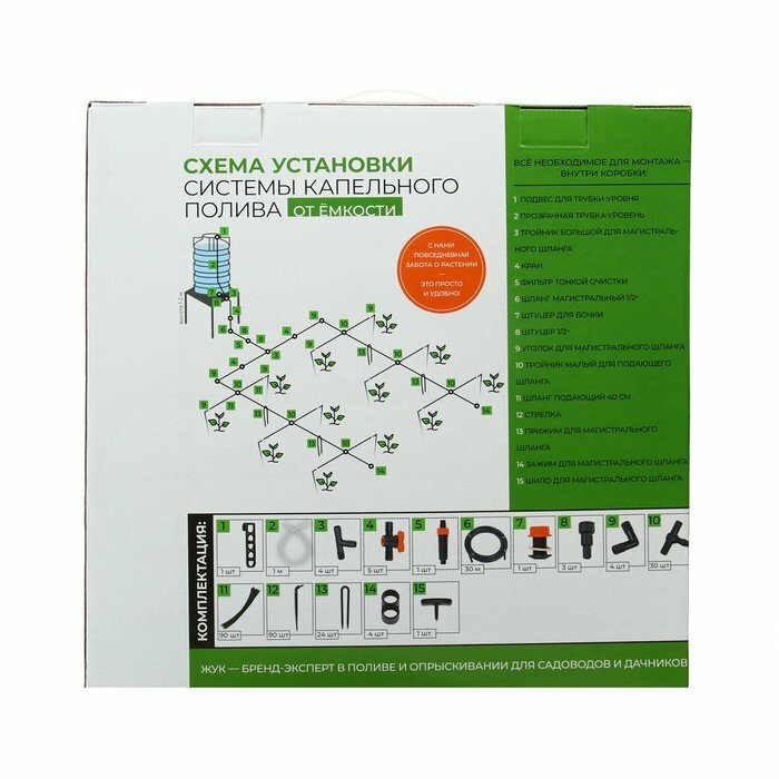 Жук Набор капельного полива от емкости, длина шланга: 18 м, кол-во растений: 60 шт