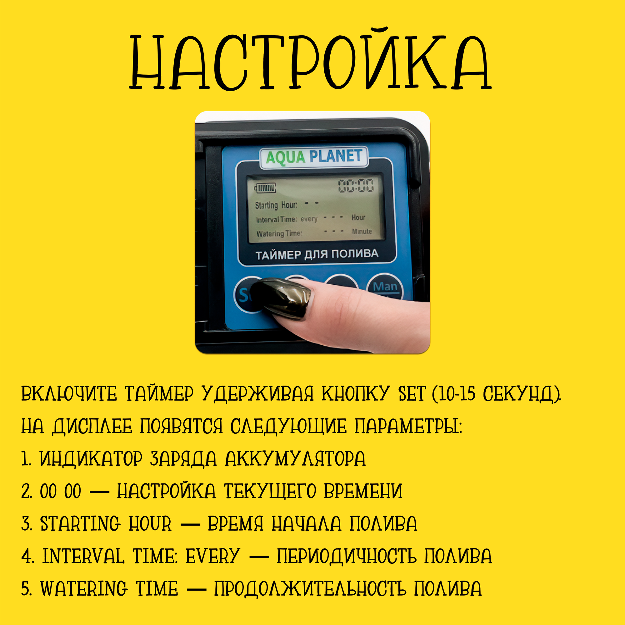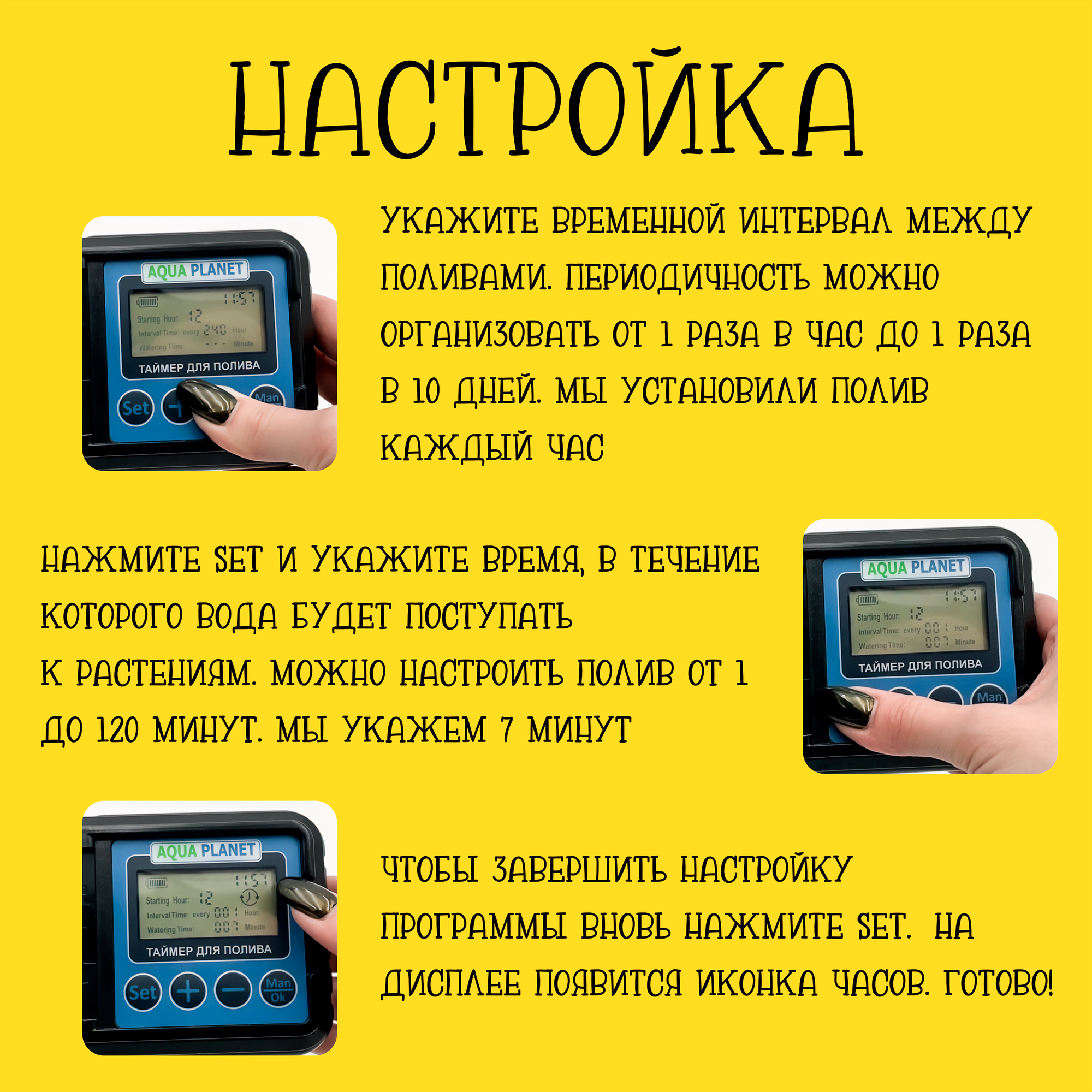 Ниже Вы можете прочитать отзывы на Таймер для полива с аккумулятором, для огорода, теплиц, Aqua Planet, Черный, 1 штука, ознакомится с подробными характеристиками, посмотреть интересные обзоры и фотографии на Таймер для полива с аккумулятором, для огорода, теплиц, Aqua Planet, Черный, 1 штука.